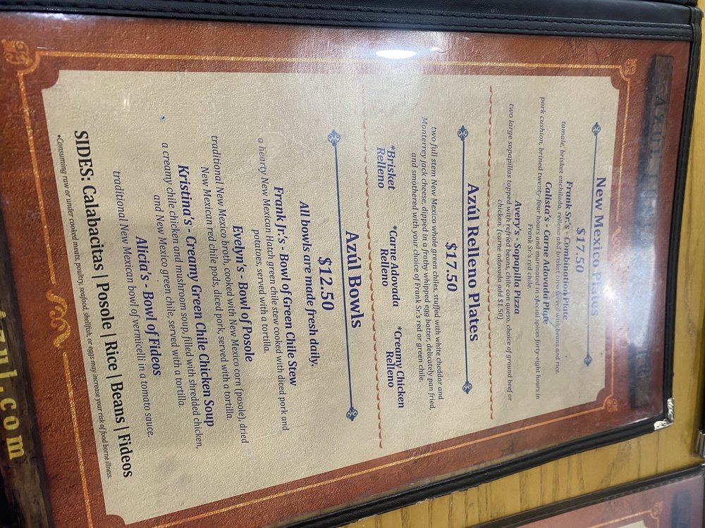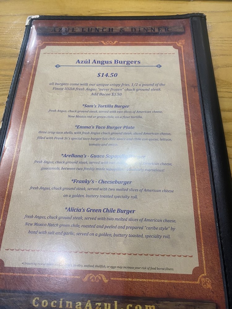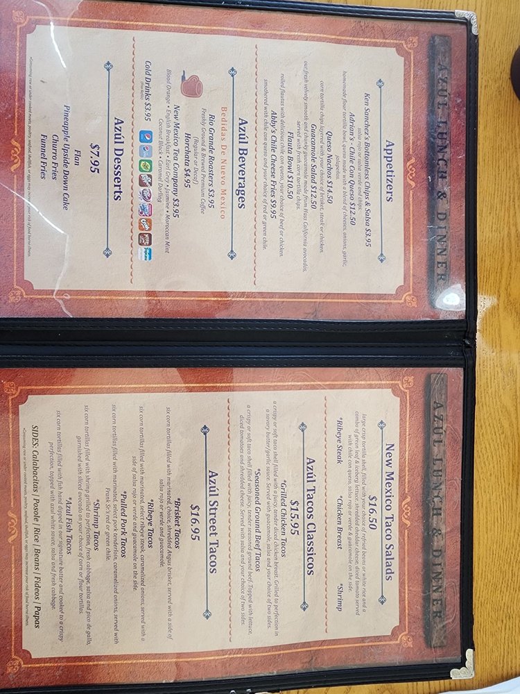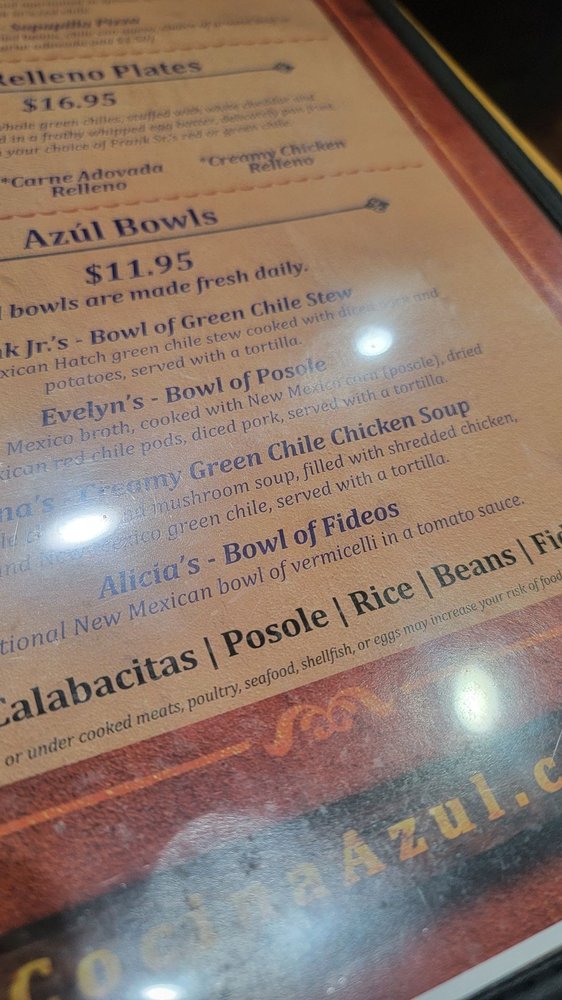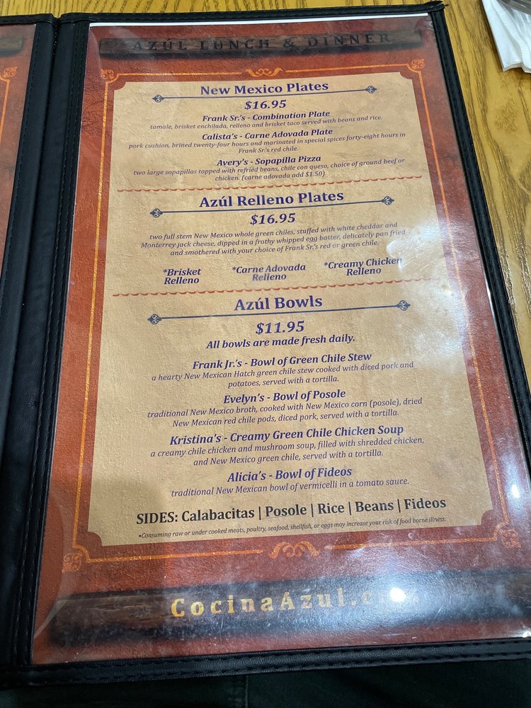 The Original Cocina Azul Mountain Menu (2025 Update)