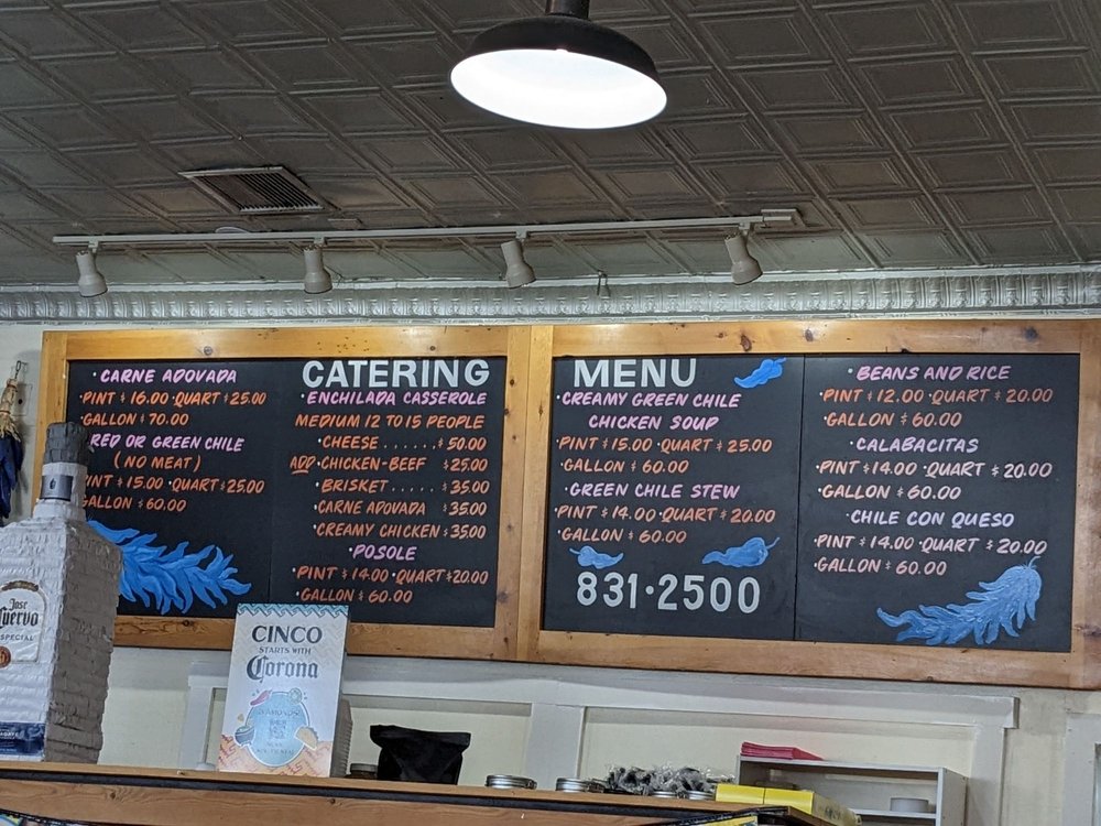 1/2 pound of the best Angus beef steak, pounded and batter dipped, fried to a golden brown and smothered with Frank's red or green chile. With toast or tortilla.